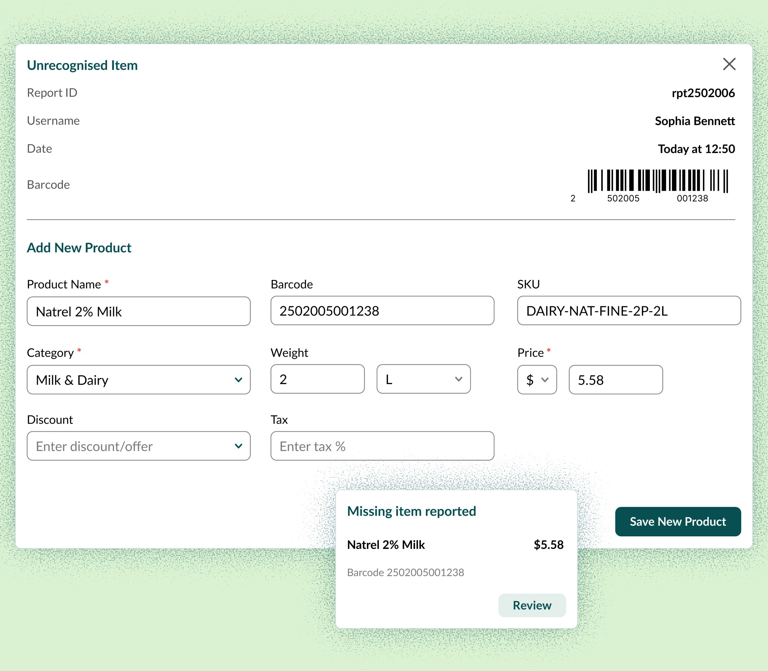 A shopper scans a barcode that does not exist in the store’s SKU library, or captures an image that the AI model cannot confidently match to a product.